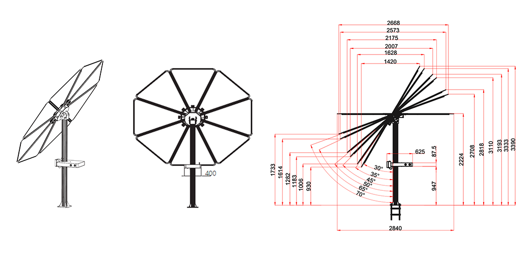 • Dimensions : diamètre 2840mm, hauteur max 3390mm